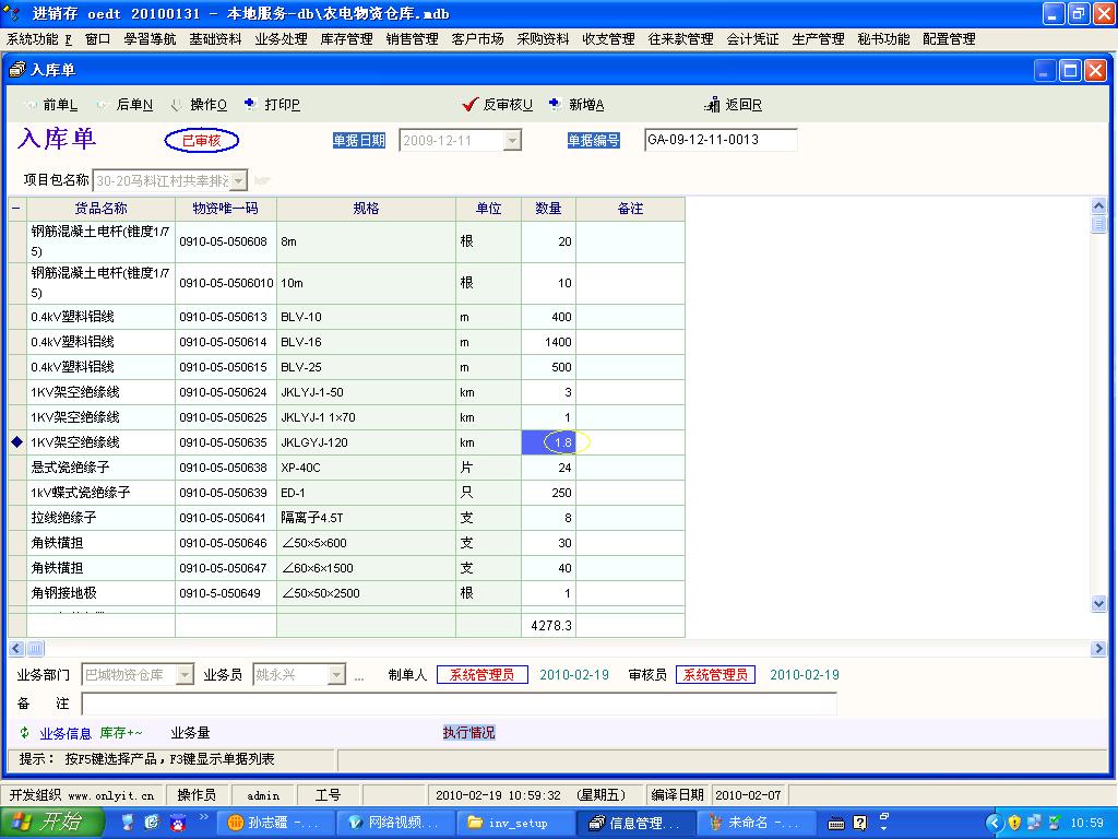 由于对入库单中的个别物资进行了反审核修改了数量,但是入库单改了,入库单明细数量还是没动。
