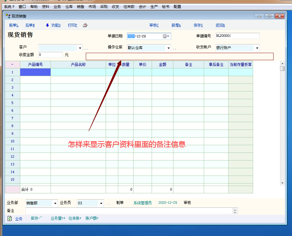 销售单怎样显示客户的资料里的备注信息,如图位置所示,我想在录入客户的销售单时提示我,客户备注里面记录我去送货比如A客户的货,要经过B客户与C客户的地方,方便B客户与C客户顺带货,