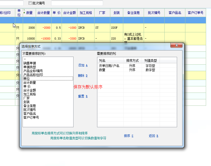 在报表里面有个排序功能,但每次启动系统到报表设置排序都是空的,有没有用脚本设置排序的,例如选择客户与时间后,设置排序时间是按降序排的;或者例如在排序里面设置好要求(升序或降序)后,下次启动系统还是这个功能来排序的。
