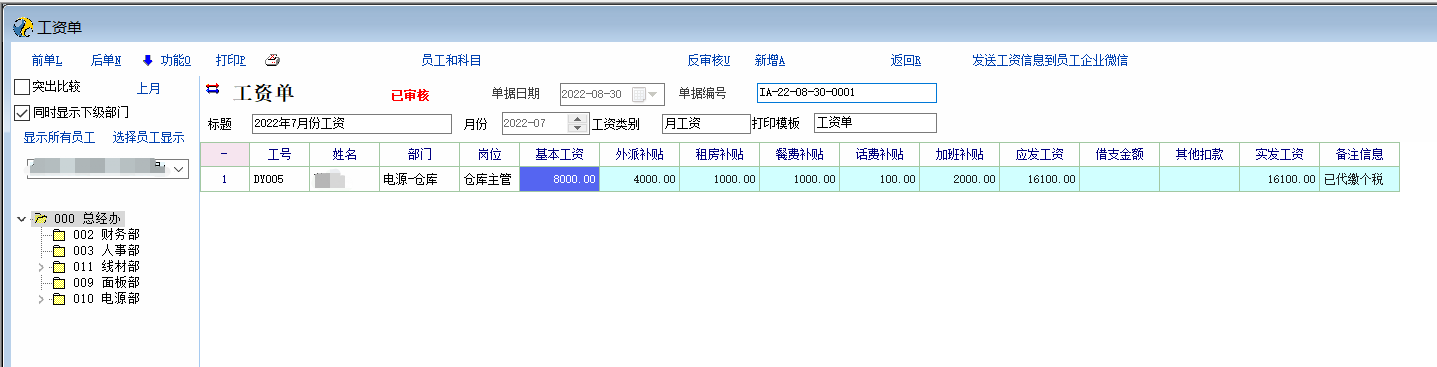 今天在论坛看到有用户需要用企业微信发送工资条,官方回复后续会考虑添加这个功能,我今天临时写了这个脚本分享出来供有需要的人参考 int init_test() { return 1; }; int create_voucher() { return 1; }; int func_show() { if(is_user_in_group("工资单制单"))//添加一个操作员分组,把有权限发送工资信息的操作员添加进来 { gui_create_speedbutton("Panel_Func","QiYeWxTz",950,7,180,22,"发送工资信息到员工企业微信","call_csp.voucher.IA.QiYeWxTz"); }; return 1; }; int adjust_row() { return 1; }; int func_before_print() { //can_print=1; return 1; }; int func_before_save() { //can_save=1; return 1; }; int func_after_check() { return 1; }; int func_after_print() { return 1; }; int func_after_show_wage_data() { return 1; }; int QiYeWxTz() { int i,grid_rows; string v_id,v_qywx,v_name,m_yf,v_gh,v_xm,v_bm,v_gw,v_jbgz,v_wpbt,v_zfbt,v_cfbt; string v_hfbt,v_jbbt,v_sfgz,v_jzje,v_qtkk,v_yfgz,v_bz,v_gzxx,v_bz,m_dqrq,m_dqsk,m_xq; m_yf = str_cut(gui_get_val("DateTimePicker_Data_Month"),6) m_dqrq = fmt_date(get_cur_date(),'yyyy 年 mm 月 dd 日'); m_xq = get_week_id(get_serv_date()); m_dqsk = get_cur_time(); grid_rows = grid_row_num('MG_Item'); for(i=1;i<grid_rows;i++) { v_id = grid_get_v("MG_Item","emp_id",i); v_name = grid_get_v("MG_Item","emp_name",i); v_bm = grid_get_v("MG_Item","dept_name",i); v_gw = grid_get_v("MG_Item","dept_post_name",i); v_jbgz = wage_get_emp_subject_data(v_id,m_yf,'A01'); v_wpbt = wage_get_emp_subject_data(v_id,m_yf,'A02'); v_zfbt = wage_get_emp_subject_data(v_id,m_yf,'A03'); v_cfbt = wage_get_emp_subject_data(v_id,m_yf,'A04'); v_hfbt = wage_get_emp_subject_data(v_id,m_yf,'A05'); v_jbbt = wage_get_emp_subject_data(v_id,m_yf,'A06'); v_yfgz = wage_get_emp_subject_data(v_id,m_yf,'A07'); v_jzje = wage_get_emp_subject_data(v_id,m_yf,'A08'); v_qtkk = wage_get_emp_subject_data(v_id,m_yf,'A09'); v_sfgz = wage_get_emp_subject_data(v_id,m_yf,'A10'); v_bz = grid_get_v("MG_Item","note_info",i); v_qywx = get_emp_info(v_id,'msn_no'); // 要在员工资料的微信栏位录入该员工的企业微信号 v_gzxx = m_yf+'月份工资条:【工号:'+v_id+'】,【姓名:'+v_name+'】,【部门:'+v_bm+'】,【岗位:'+v_gw+'】,【基本工资:' v_gzxx = v_gzxx+v_jbgz+'】,【外派补贴:'+v_wpbt+'】,【租房补贴:'+v_zfbt+'】,【餐费补贴:'+v_cfbt+'】,【话费补贴:'+v_hfbt v_gzxx = v_gzxx+'】,【加班补贴:'+v_jbbt+'】,【应发工资:'+v_yfgz+'】,【借支金额:'+v_jzje+'】,【其他扣款:'+v_qtkk v_gzxx = v_gzxx+'】,【实发工资:'+v_sfgz+'】,【备注:'+v_bz+'】,【感谢您的辛勤付出,若对收到的工资明细有疑义,请按公司规定联系相关人员处理,谢谢!】' v_gzxx = v_gzxx+'【发送日期时刻:'+m_dqrq+' '+m_dqsk+' 星期 '+m_xq+'】' if(v_id ==''){ msg('没有工资明细数据'); return 0; }if(v_id !='' && v_qywx != ''){ send_qywx_msg(v_qywx,v_gzxx); }if(v_id !='' && v_qywx == ''){ dbg('【员工:'+v_id+' '+v_name+'】的人事资料的微信栏位没有录入企业微信号,请联系人事资料维护员补录入后再发送工资信息到员工企业微信!');}; }; return 1; }; int main() { return 1; }; |