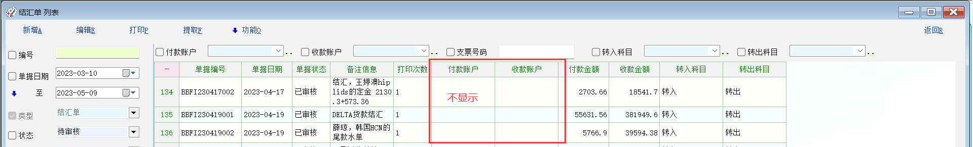 求助_请老师修复一下,结汇单之前已审核单据在账户编号修改处理后付款账户/收款账户全部显_使用经验