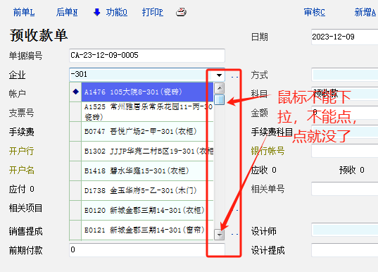 鼠标下拉问题下个版本会解决。