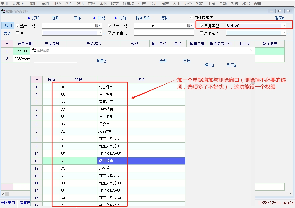 报表里面选项”单据类型“选择建议去掉不必要类型!看图