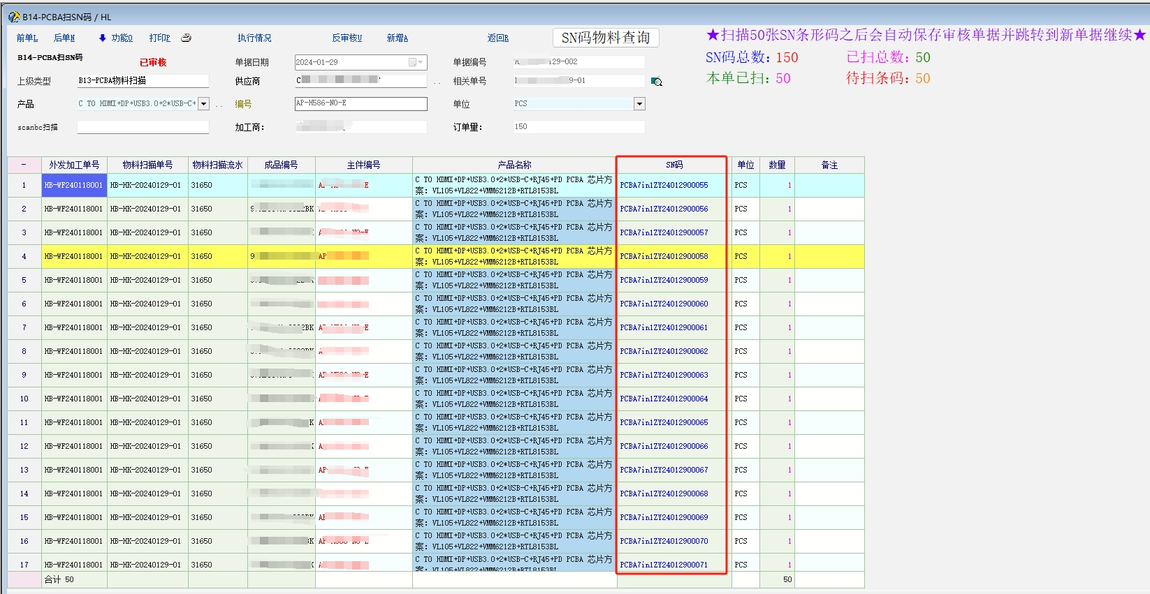 那就用脚本解决,就像我这里的SN码也是扫码后根据主物资来自动新增明细的