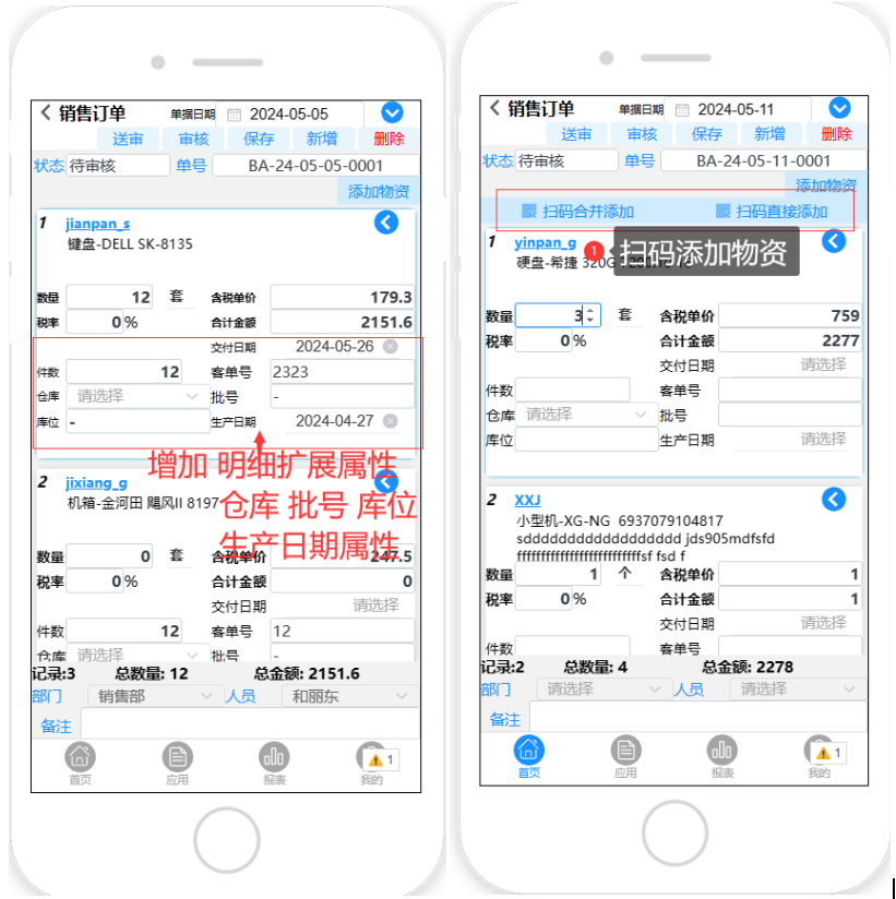 1.增加 明细扩展属性 ,增加 仓库 批号 库位 生产日期 交付日期 属性