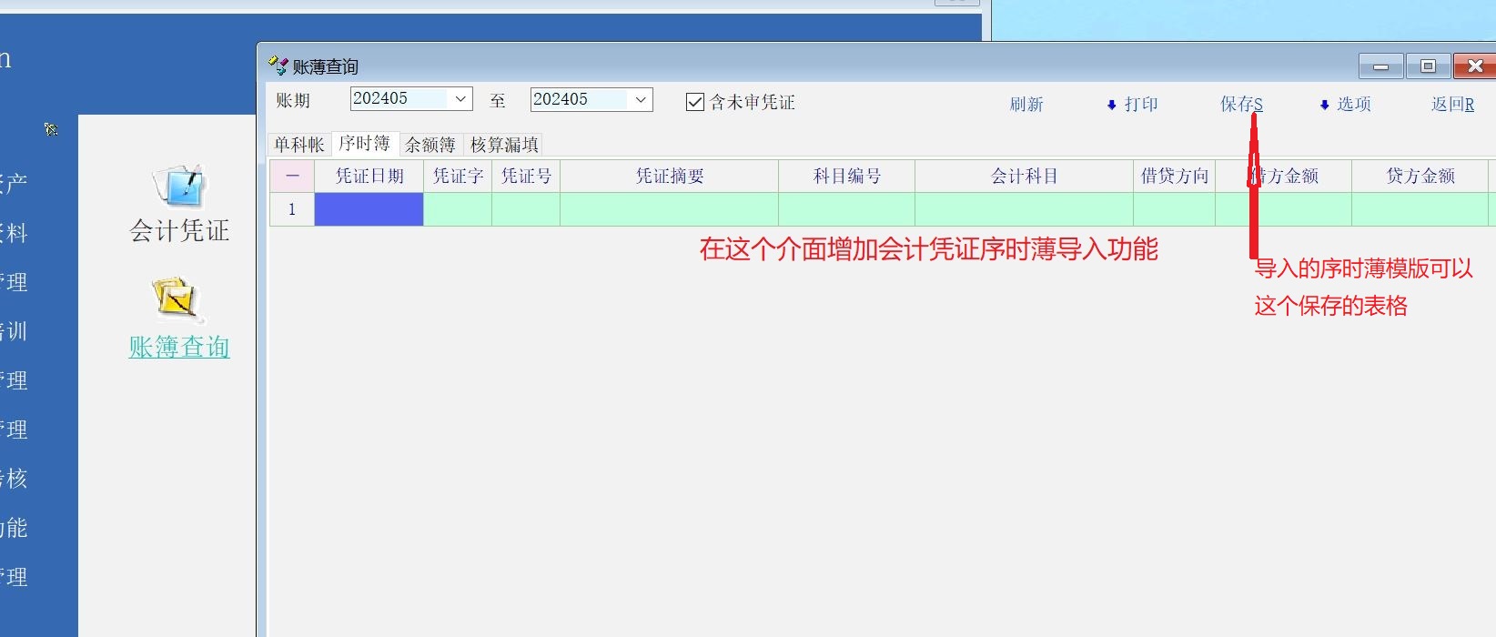 财务会计功能的账薄查询里能否增加序时薄导入功能?