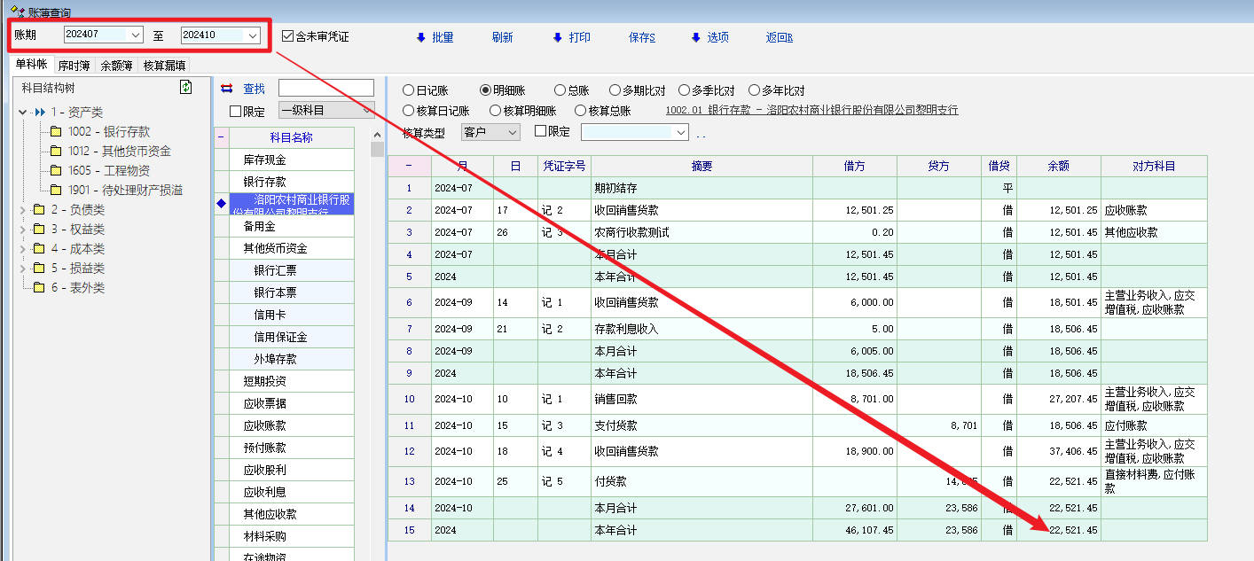 如果选择202407-202410,最终余额与实际相符。