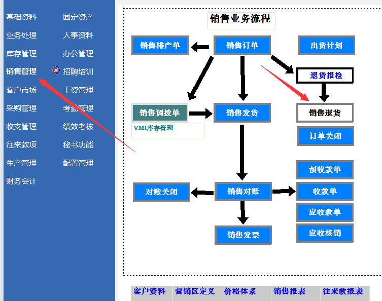 ☉处理方法:做现销退货处理库存和资金,然后如果涉及往来款的话再去往来管理里做核销。