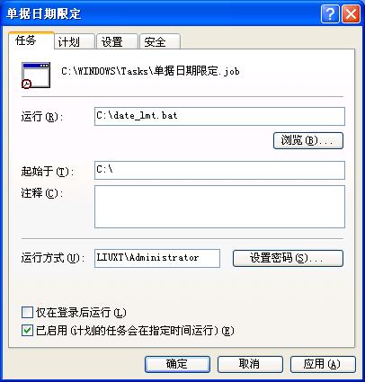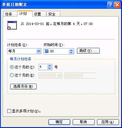 3、在服务器上设置计划任务,在每月的4号7:00运行批处理文件date_lmt.bat。