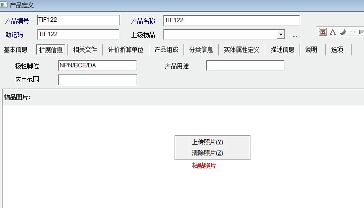 如图,产品定义中的物品图片可否增加粘贴选项,因为现在许多图片都是通过截图得来的,如果可以直接将图片粘贴上去,速度会快很多,也方便许多。