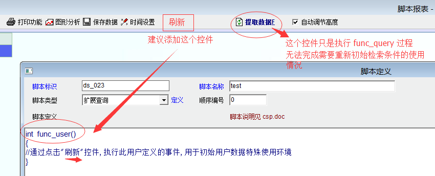 有需要时,用户就可点击上面的控件来执行 func_user 初始环境