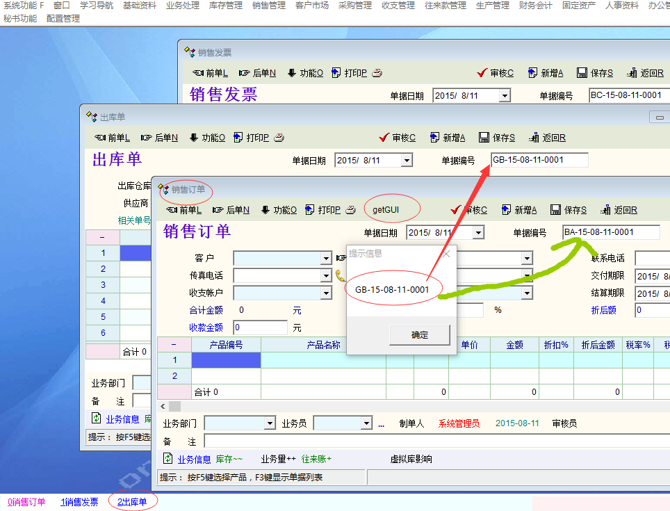 即使关闭其它单据界面只剩下当前的 销售订单,点击getGUI 仍然是记忆首次的单据最后一个,除非重新登陆再进。