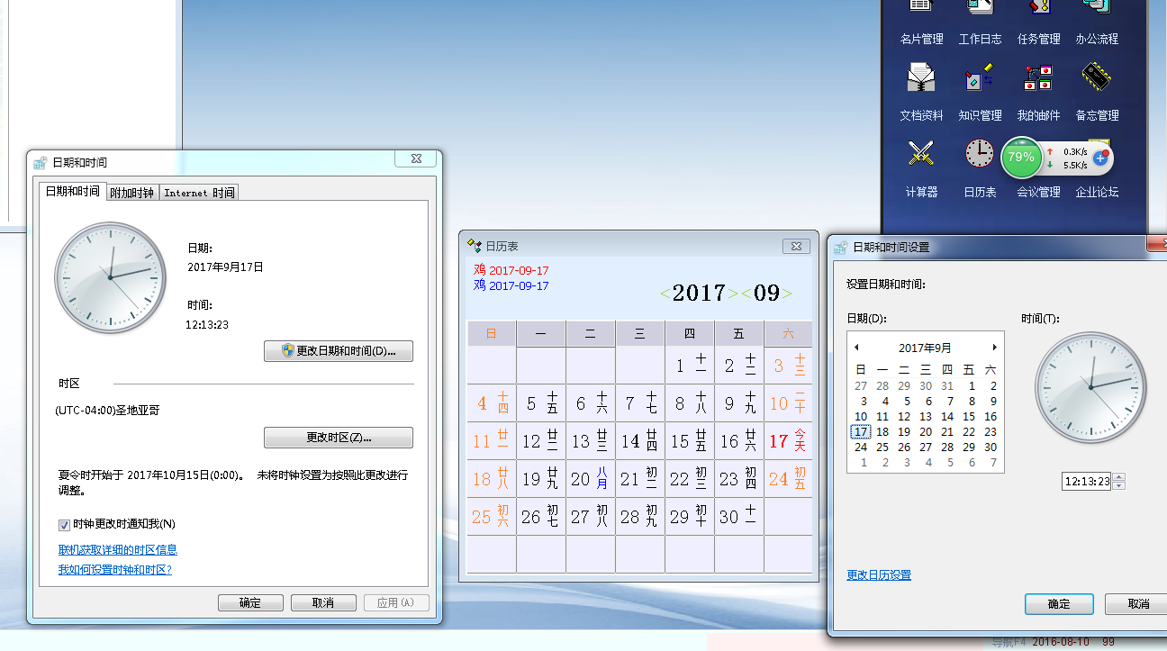 系统的日历就出现,日期对应的星期几是错误的,相差一天。(如2017年9月18号是星期一,但软件显示的星期日)这样的话,系统中的全部和日期有关功能,得出来的数据不准确的。