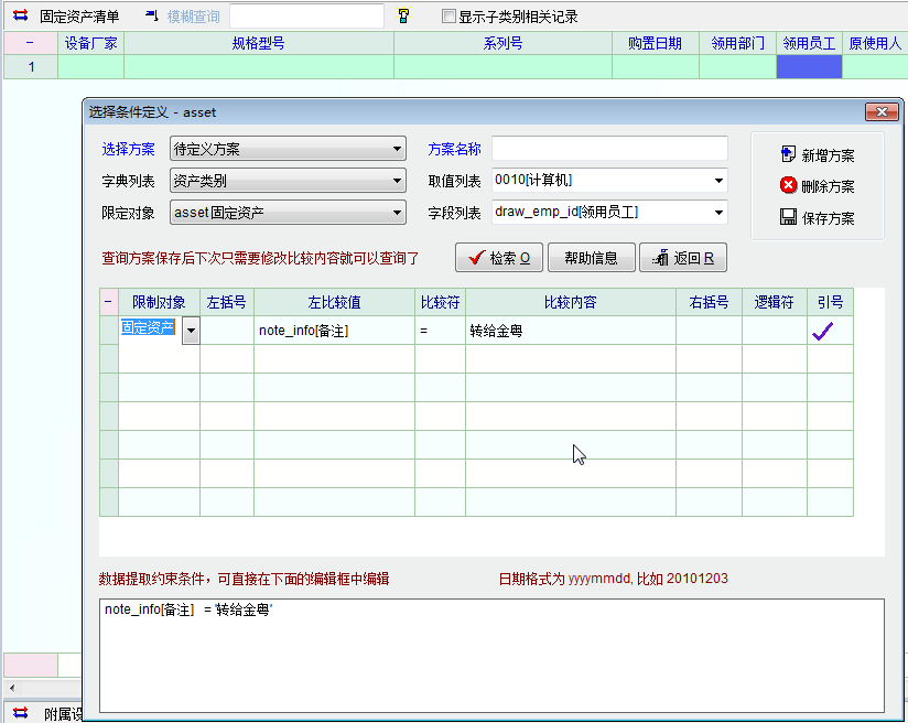 原创_请问如何在“自定义条件数据”里搜索备注内容呢?_使用经验