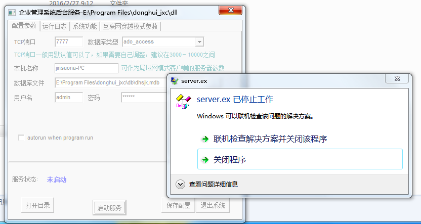 应用程序名:  server.ex