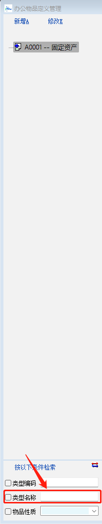 1:办公物品定义检索下的类型名称