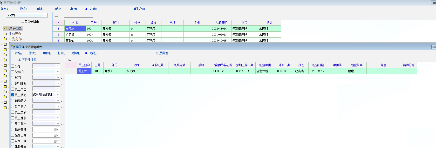 职员修改工号后体检数据不同步,修改工号后查询不到未修改工号前的数据,希望老师测试下,谢谢
