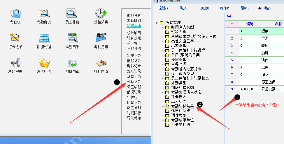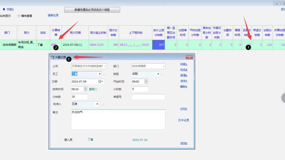 外勤记录里面输入了外勤记录,但是数据处理后,考勤日帐里面还是不会结合外勤记录,体现结果   还是会显示迟到或者早退什么的结果