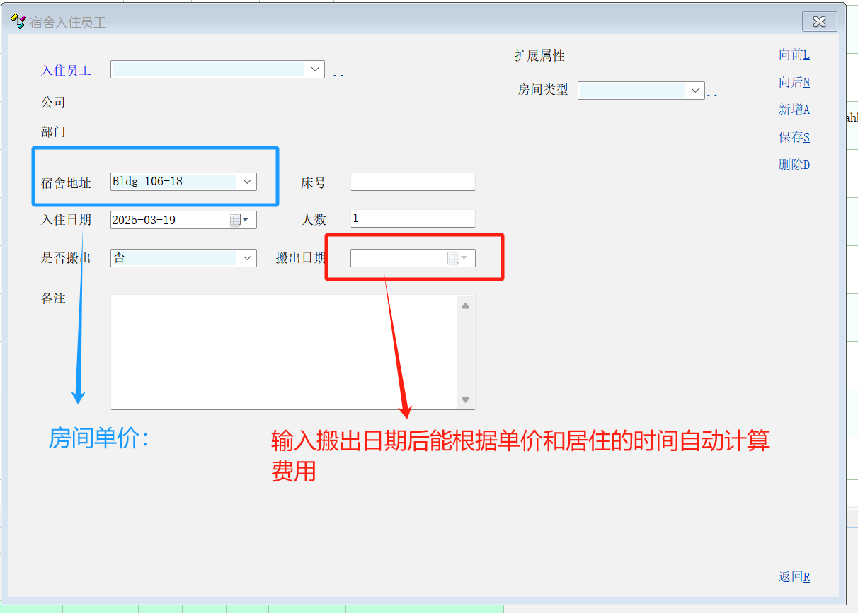 尊敬的开发者好,建议在宿舍管理模块的“新增入住员工”增加入住单价和金额计算功能,谢谢!