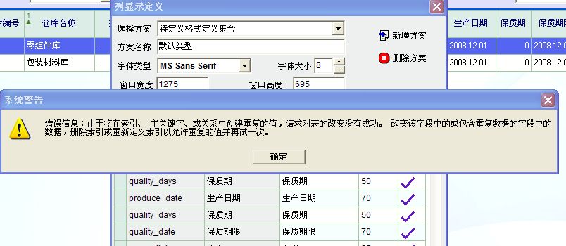 二、库存报表中的“批次库存量报表”和“批次分仓库报表”定制不了,大概是“保质期”重复了。见图: