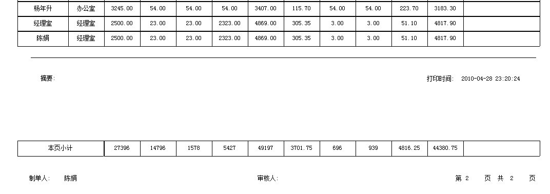 推荐_工资报表,打印时,每页最后一行能不能自动生成一行小计_人力资产