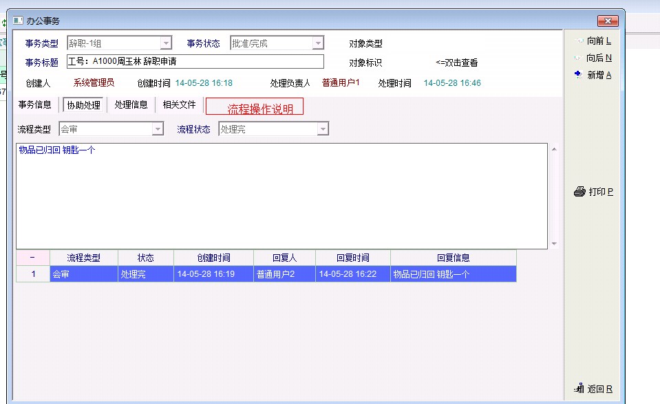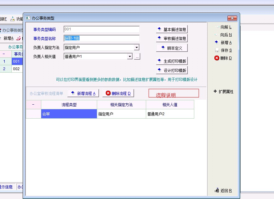 3办公事业里增加 流程说明 :