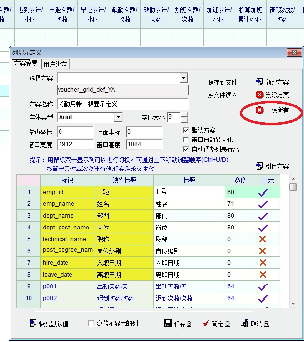 考勤月帐窗口右键 单据明细列表 进去,点击删除所有,然后重新进入系统。