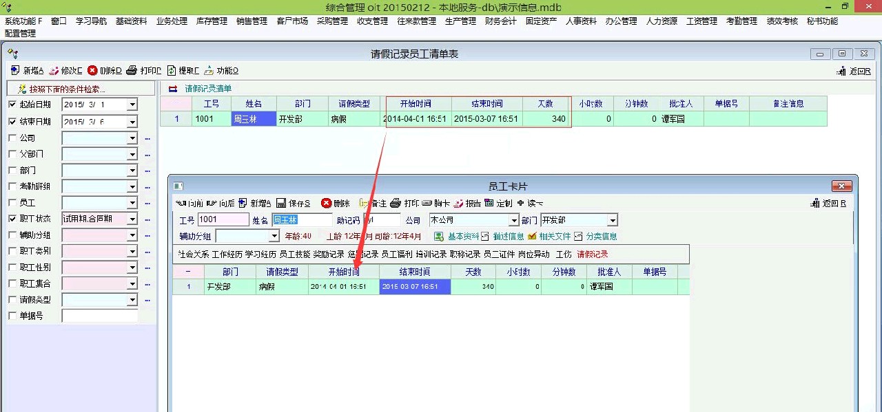 经过测试发现,2015年3月1日前的请假全部不显示,3月1日后的请假,在卡片下显示。
