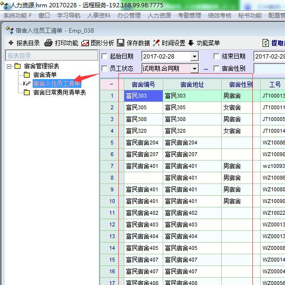 宿舍员工清单报表,所有分公司的清单会显示在这儿(要求只显示本公司 的)