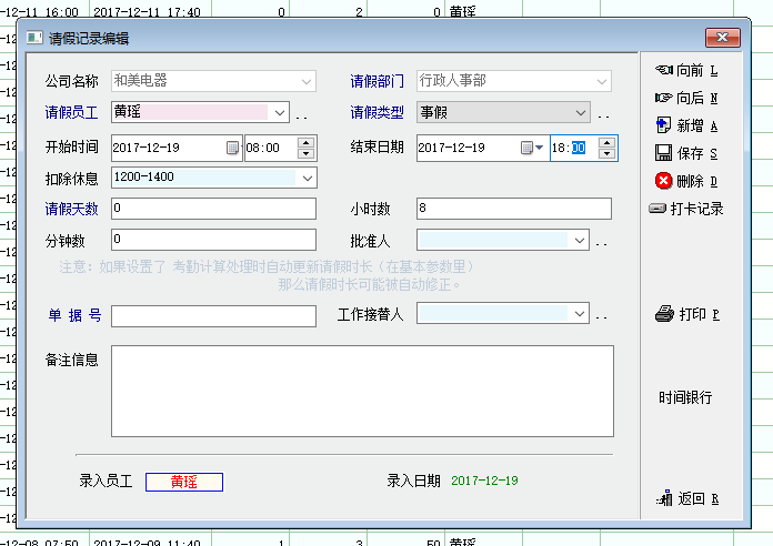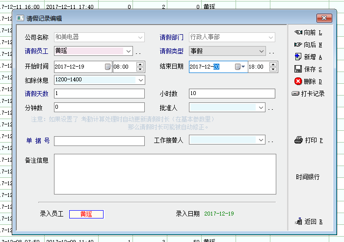 建议整天的请假,就用整天的时间算法。比如 2017-12-19 00:00 - 201712-21 这样尝试一下。 未打卡次数,可以看月账中好像是有的。缺勤 连续几天的补卡,只能导入,批量比较好。 |