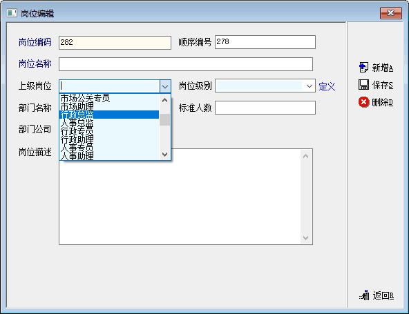 部门岗位设置如果是管理员身份登陆进去,多个公司的相同岗位信息很容易选择错误,最终导致统计报表中按照部门岗位查询信息无效。建议增加公司显示信息