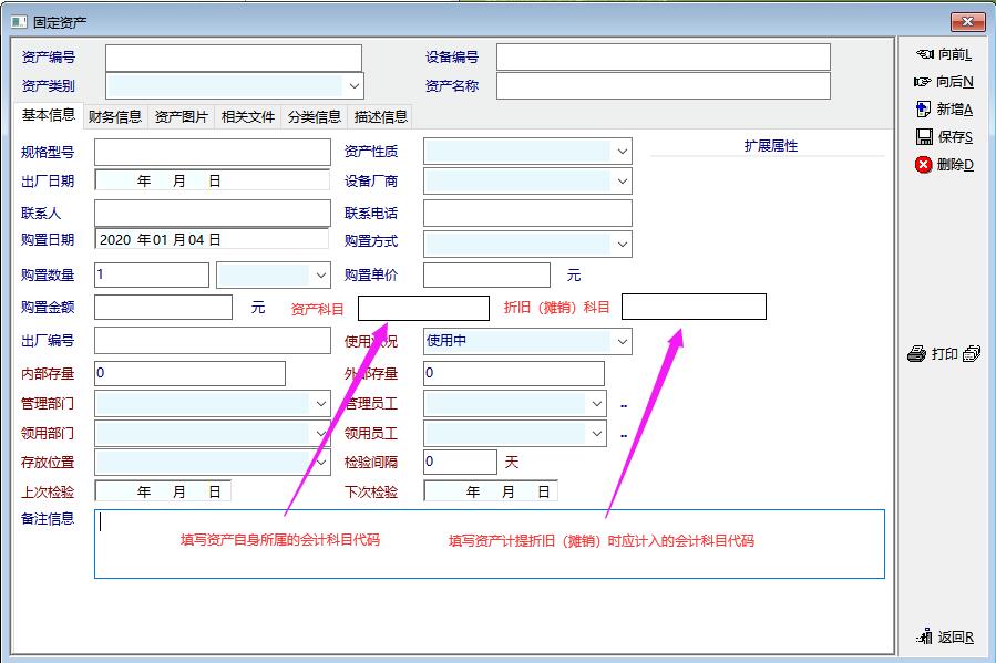 目前的资产管理软件,在定义资产卡片时无法定义资产科目和折旧科目,在生成折旧凭证时也仅能指定一个折旧科目,这对于企业只有一般的固定资产来说没有影响,但是如果一个单位既有固定资产,也有无形资产或者生物资产的话,使用起来就非常不便。一般来说固定资产科目为“固定资产”,折旧科目为“累计折旧”;无形资产科目为“无形资产”,摊销科目为“累计摊销”;生物资产科目为“生产性生物资产”,折旧科目为“生产性生物资产累计折旧”;投资性房地产科目为“投资性房地产”,折旧科目为“投资性房地产累计折旧(摊销)”等等。如果在资产卡里定义两个参数:资产科目和折旧(摊销)科目,则可以很好地解决这个问题,甚至还可以将资产管理软件扩展用途,比如用于长期待摊费用的摊销等。这个我们可以参考金蝶软件的相关设置,相应地,卡片里某些字段的表述也可以做相应地修改,比如将”购置日期“修改为”可使用日期“,因为某些资产可能是通过在建工程转入或者其他方式获得的,并非是购置;”购置方式“改为”入账方式";“数量”、“单价”、“金额”可以将“购置”字样去掉;“出厂日期”和“出厂编号”可以修改为“可使用日期”和“编号”等等。