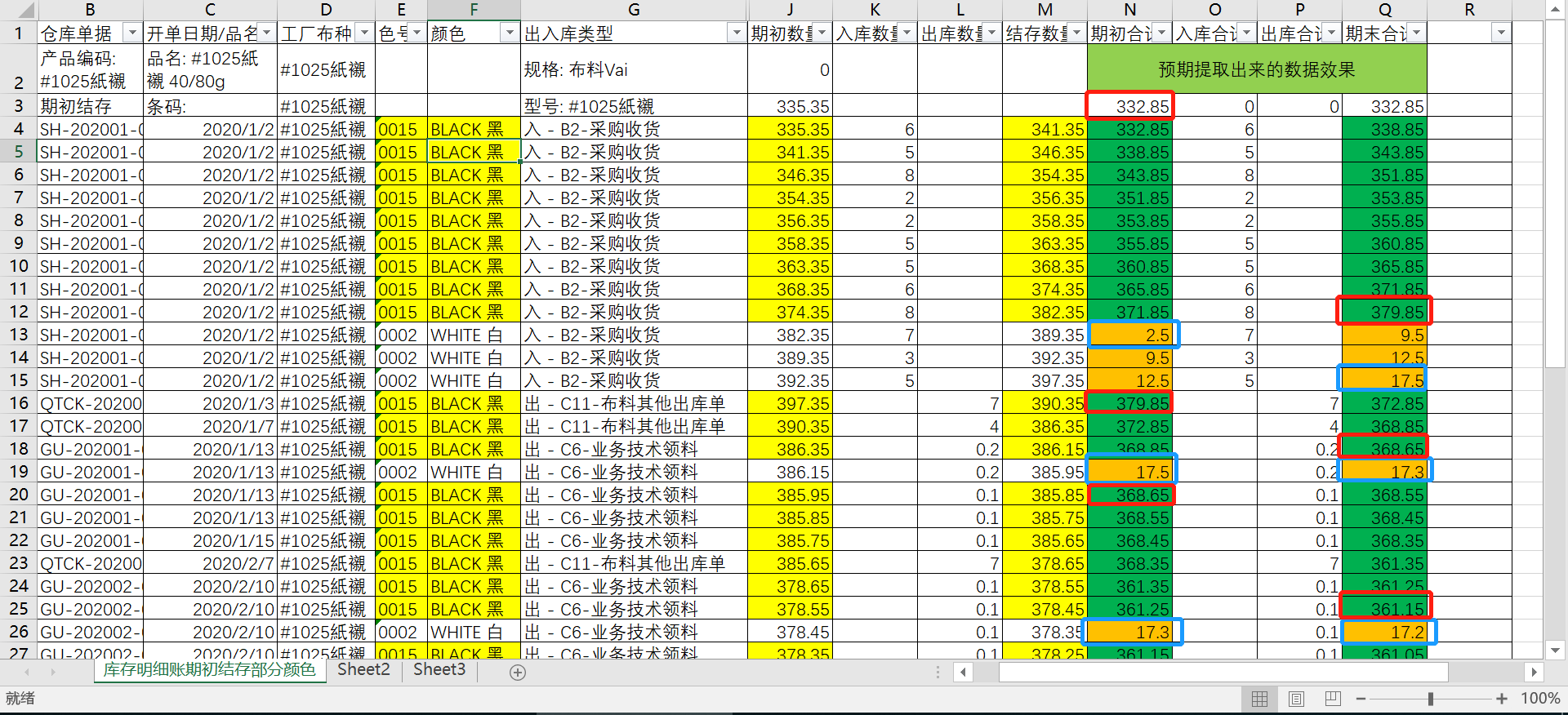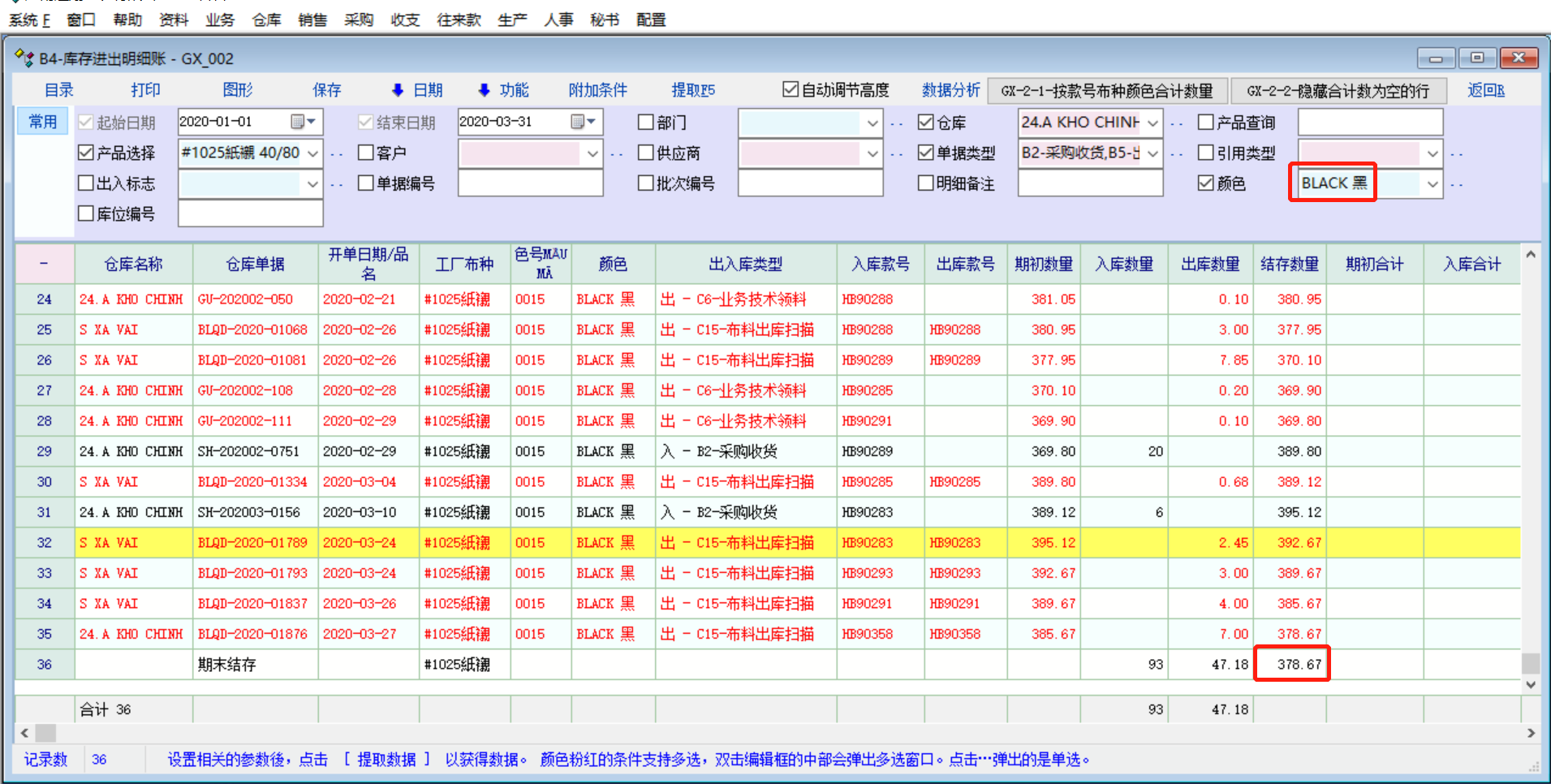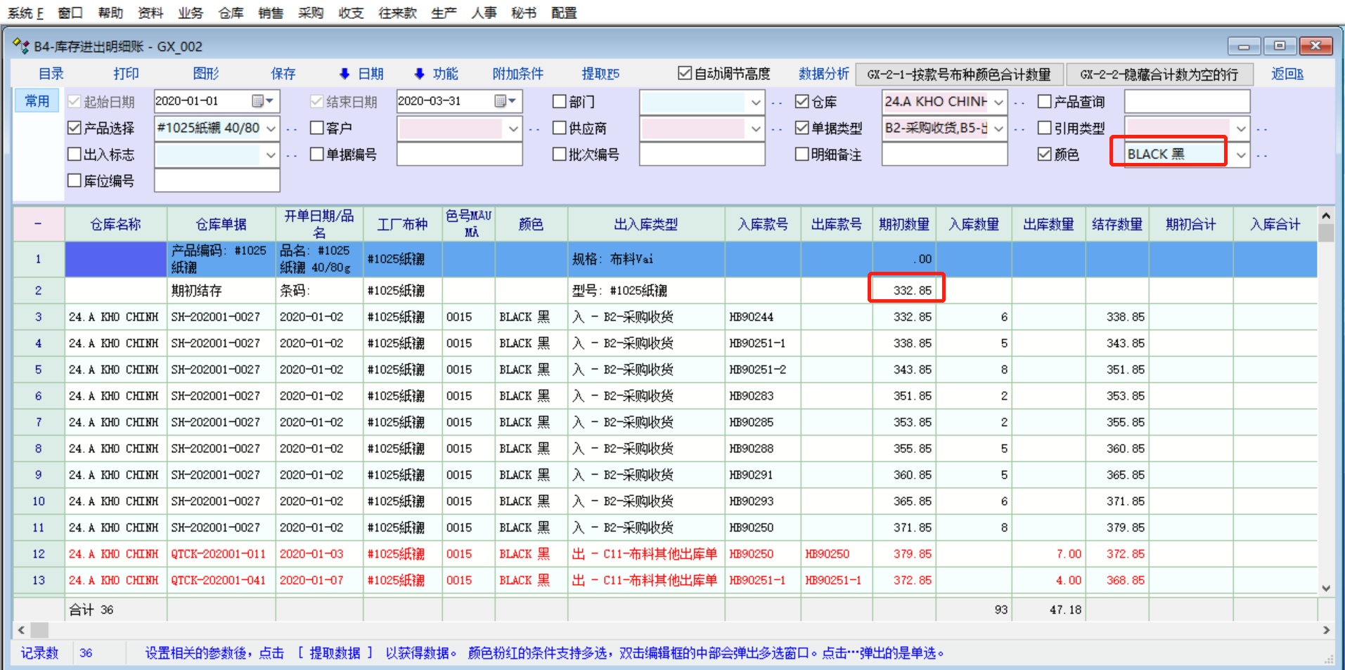 原创_库存报表的库存明细账和库存流水账的期初数量和结存数没有区分行业属性(颜色)_产供销