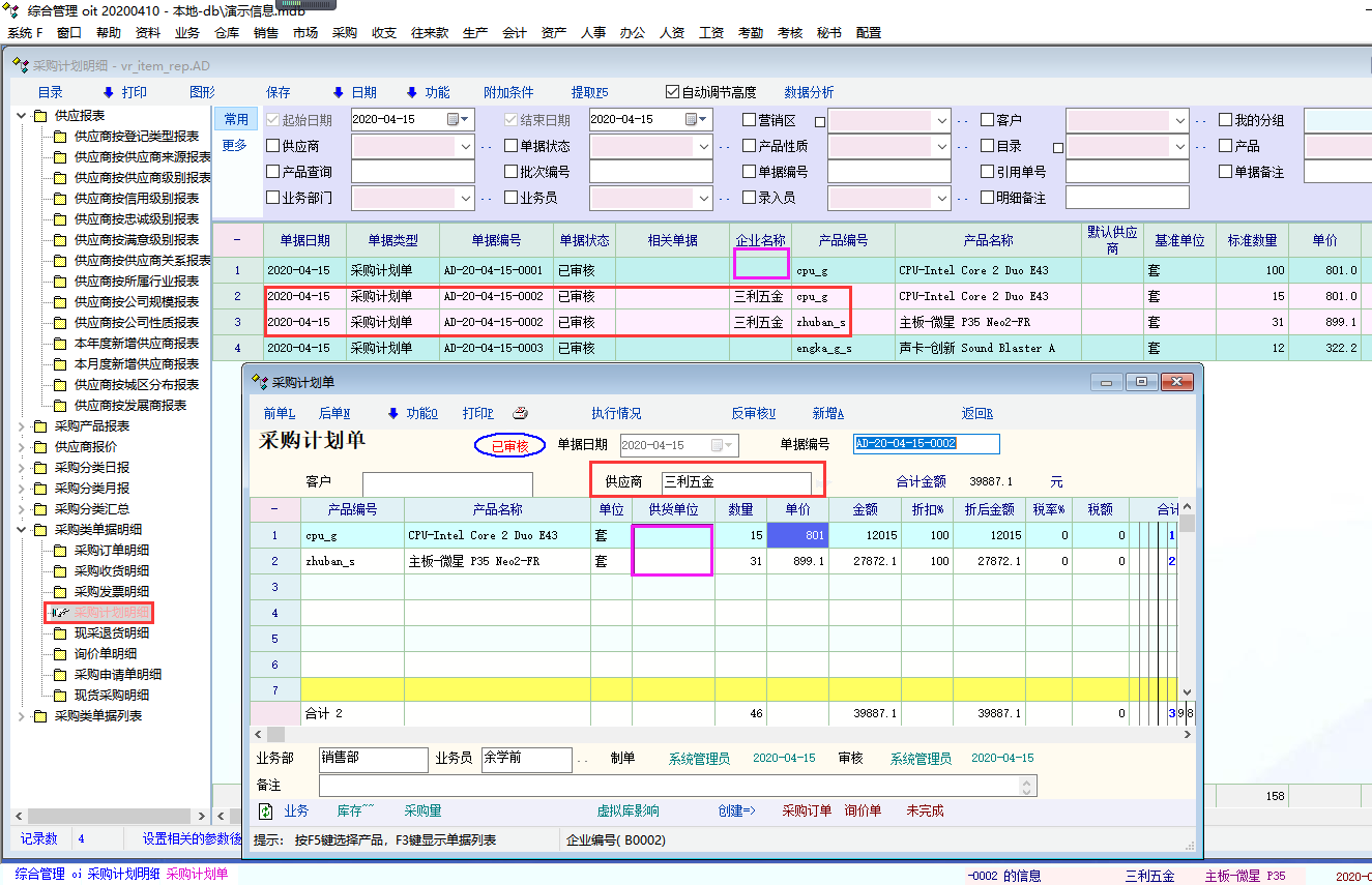 求助_采购计划业务单据明细中供货单位字段 报表中无对应字段_产供销