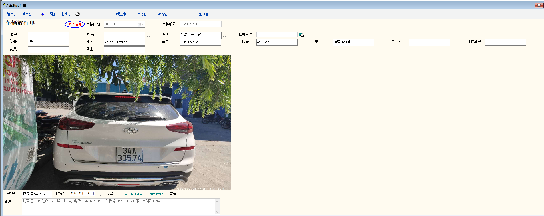 2.  根据放行物品的不同,会有不同的审核人,所以希望可以增加脚本函数,通过脚本设置单据送审后,可以根据业务员自动更新微信消息通知人为业务员,这样就只需要在单据里面设置根据不同类型的放行事由,自动设置单据业务员并在送审核后通知到相应的人来审核