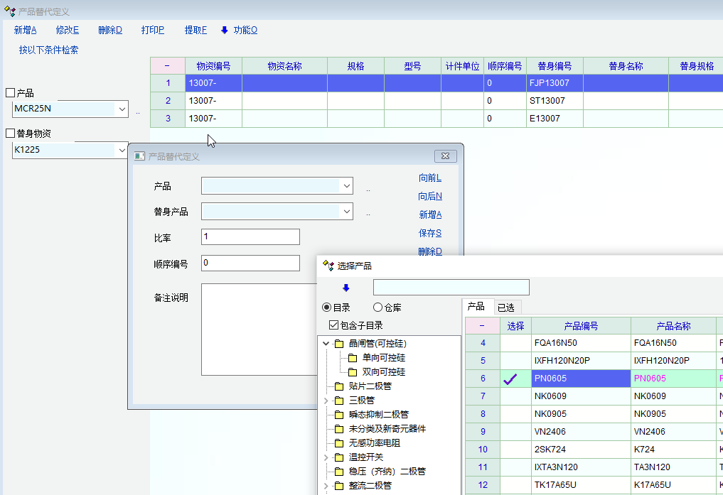 产品替代定义也没法输入产品。选择输入后还是空白的。