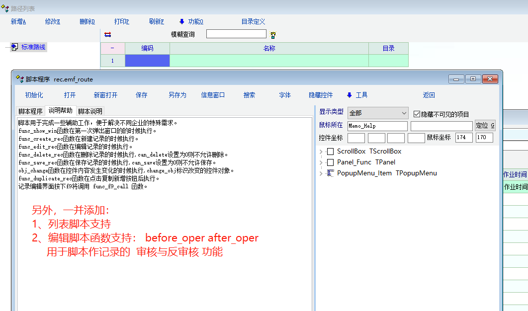 2、编辑脚本函数支持: before_oper after_oper