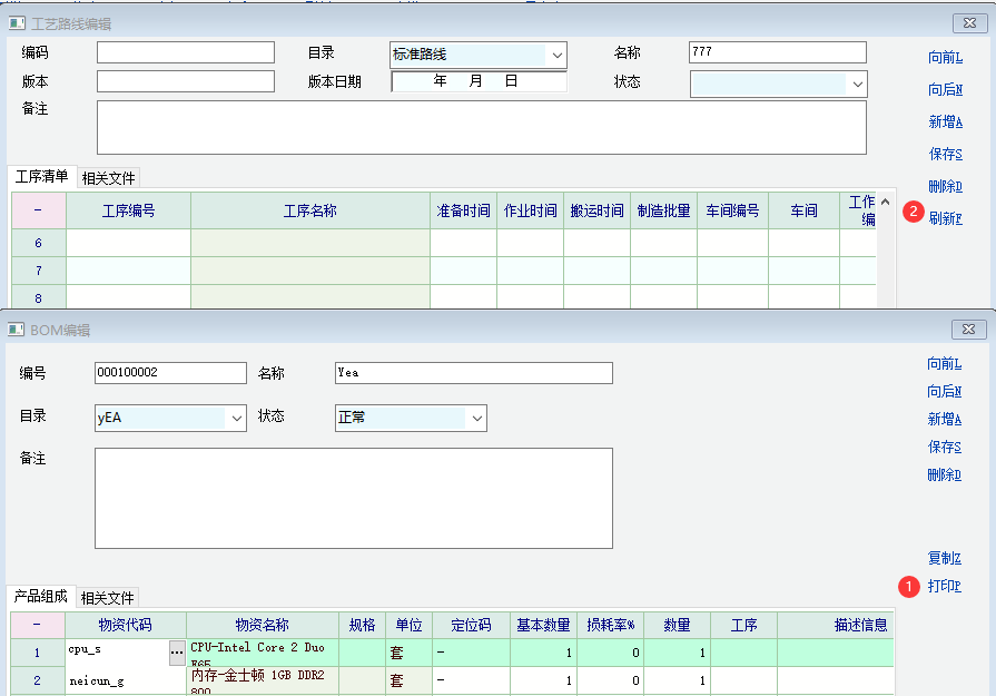 1、刷新 按钮不起作用,在 路径编辑及 BOM定义的界面