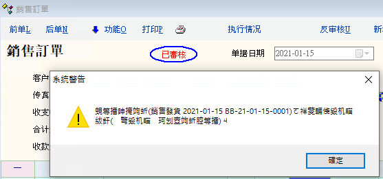 當反審覈已被下級單據引用的銷售訂單時,此時報錯的文字是亂碼的。