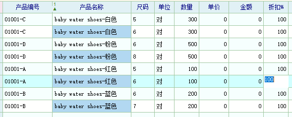 在鞋行业,有码数之分,但实际操作中是类似一个二维的表格来减少行记录,即分颜色不分码的建立产品信息及bom