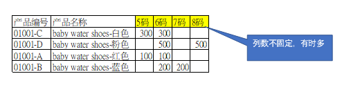 在做销售订单时,为匹配软件方式,还是用一维表格来录入,但在打印的时候,如何实现类似于二维表的展示模式(码数列是动态的,即每张单据的码数不是固定的)