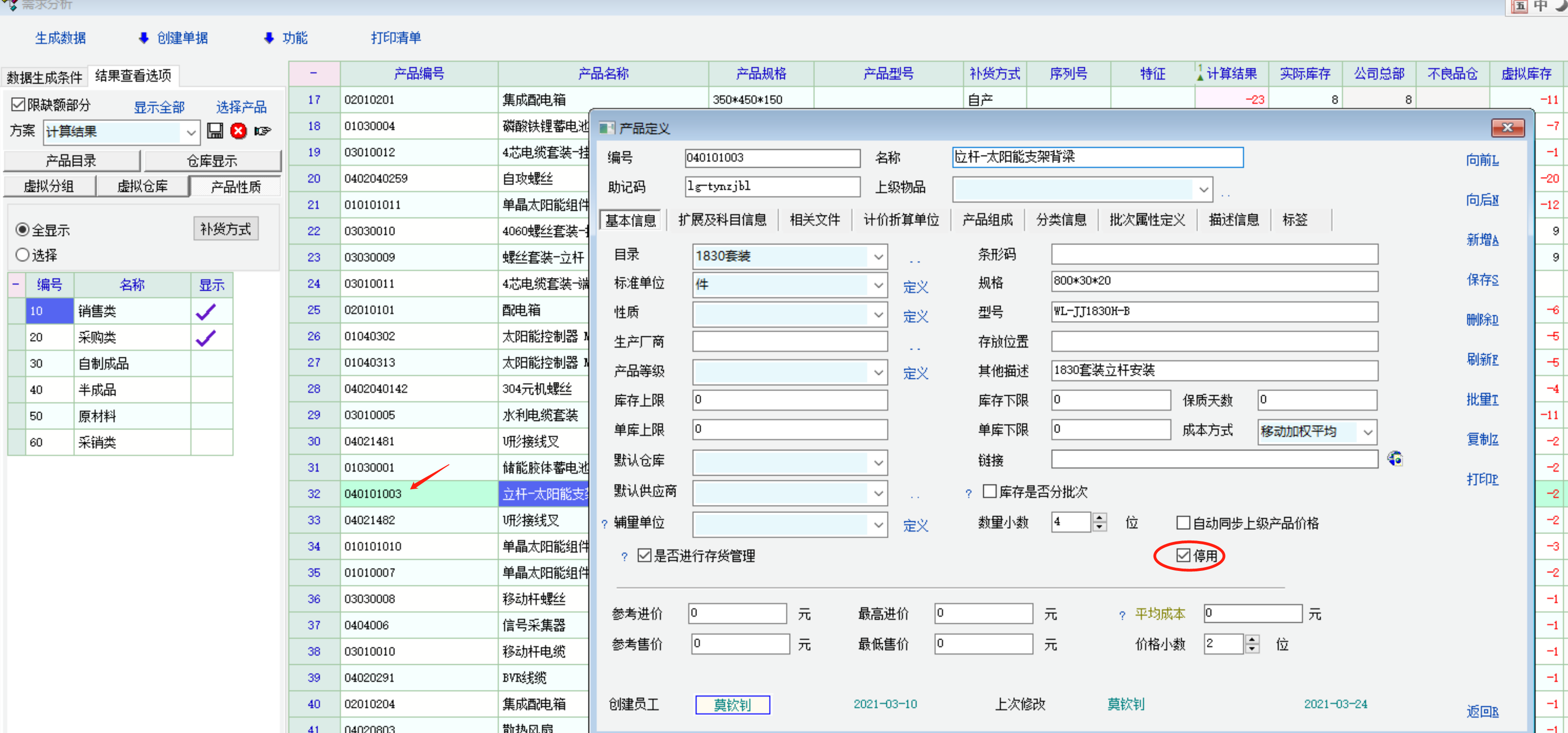 如图,在做需求分析时,发现会把已停用的产品也列出来