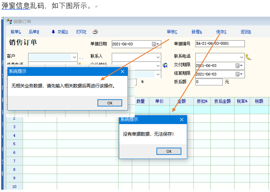 如单据被 下级单据引用时的操作 提示,也有乱码部分