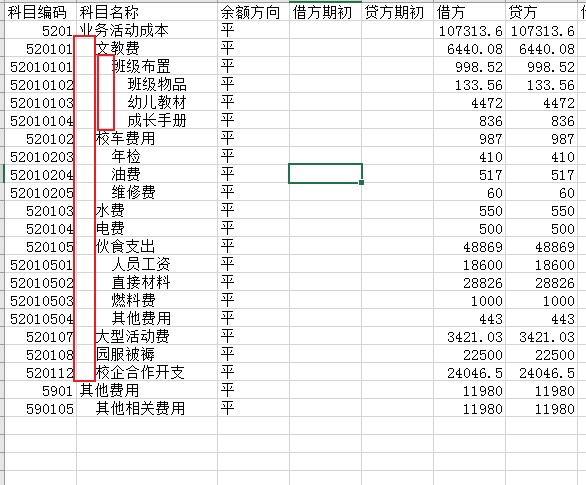 建议去掉重复文字,改用缩进方式显示,1级科目顶格,下级科目依次退2个空格,这样,既方便阅读,打印效果也好。
