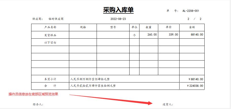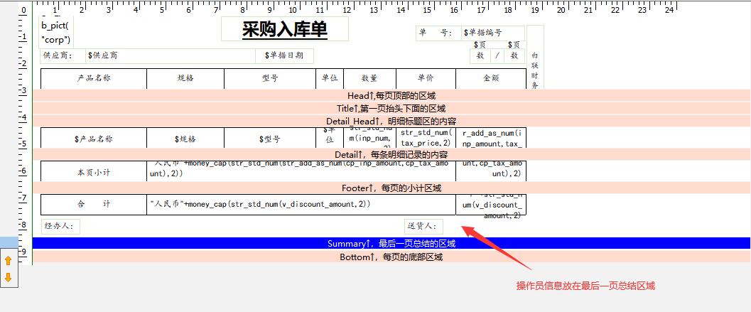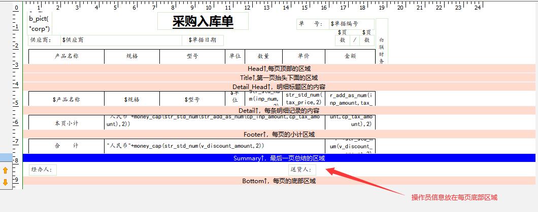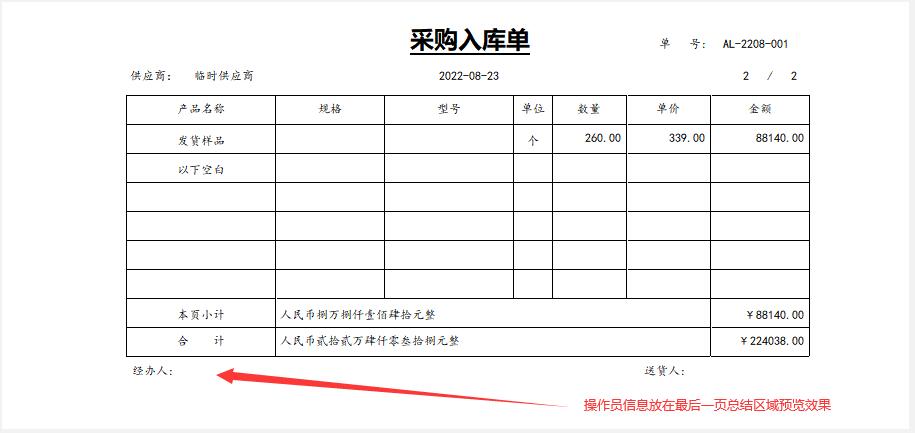 每页的底部区域离最后一页总结区域的距离有点远,有些打印机甚至会出现打印不全的现象。附件中没有把操作员信息放在每页底部区域,我试过如果放在每页底部区域明显离最后一页总结区域有点远,看不去不美观。