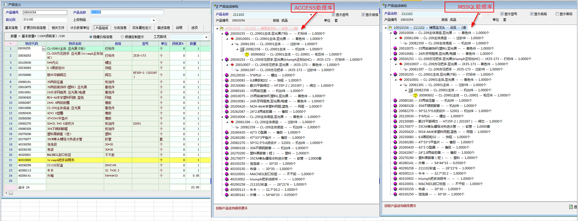 在ACCESS数据库里,产品组成结构展示是按照产品定义里面的产品组成顺序进行排序的。