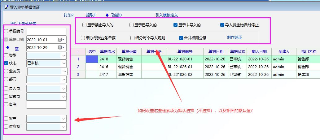 求助_在管理列表界面,如何使检索项的选择框默认选中(不选中),以及如何设置相关检索项的_产供销