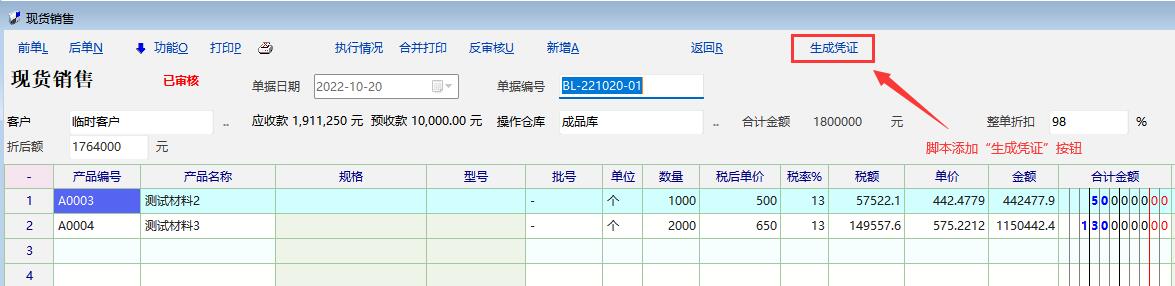想法缘于希望在物资单据界面直接生成会计凭证(相对在财务模块引入业务凭证更方便一些,目前金蝶软件都支持从单据或者单据列表直接生成凭证),思路是在单据上增加一个按钮“生成会计凭证”,点击后直接跳转到导入业务凭证单据界面,并且默认单据编号为物资单据的编号并且选中,“细分每张业务单据”、“细分每个导入规则”这两个选项默认不选。经过徐老师帮忙增加按钮解决了,不过后续这些需求没有找到相关的函数,自定义报表的相关函数,比如 def_lmt_set_val(定义参数的默认值 ),lmt_set_checked(设置参数默认选择)好像在这里不起作用。希望老师在以后的版本中支持在物资单据界面直接生成会计凭证(前提是已经设置了对应的导入模板,如果没有设置则生成空凭证或者进行报错提醒),或者提供相关的函数。 |