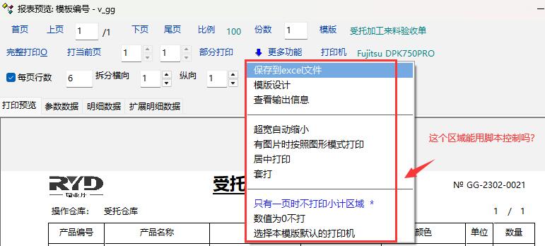 目前的权限控制只能控制是否允许打印,但是打印时相关的选项无法控制,比如“只有一页时不打印小计区域”、“有图片时按图形模式打印”等,如果脚本可以对相关打印选项进行控制,会更加方便一些。