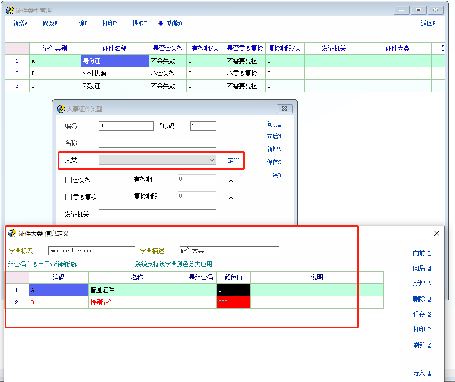 可以把证件类别挪到证件大类,二级分类放在证件类型,或者启用扩展属性,要二三级分类就启用2个扩展属性,例如:扩展属性分别为二级类别,三级类别等,也是可以达成目的